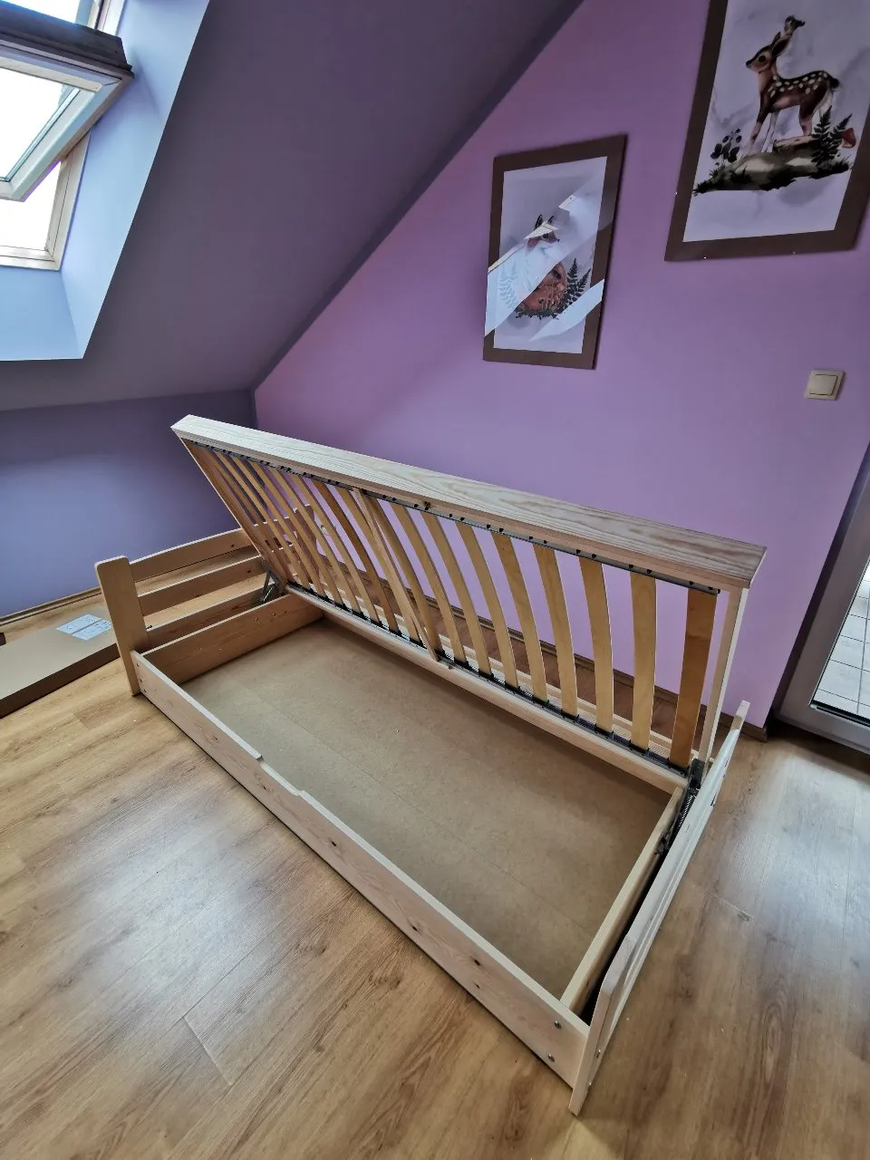 Super lova, labai patogi. Isskleidus labai patogu atsigulti salia vaiko ir paciam vaikui patogu miegoti naujoje, dideleje lovoje. Aciu jums
