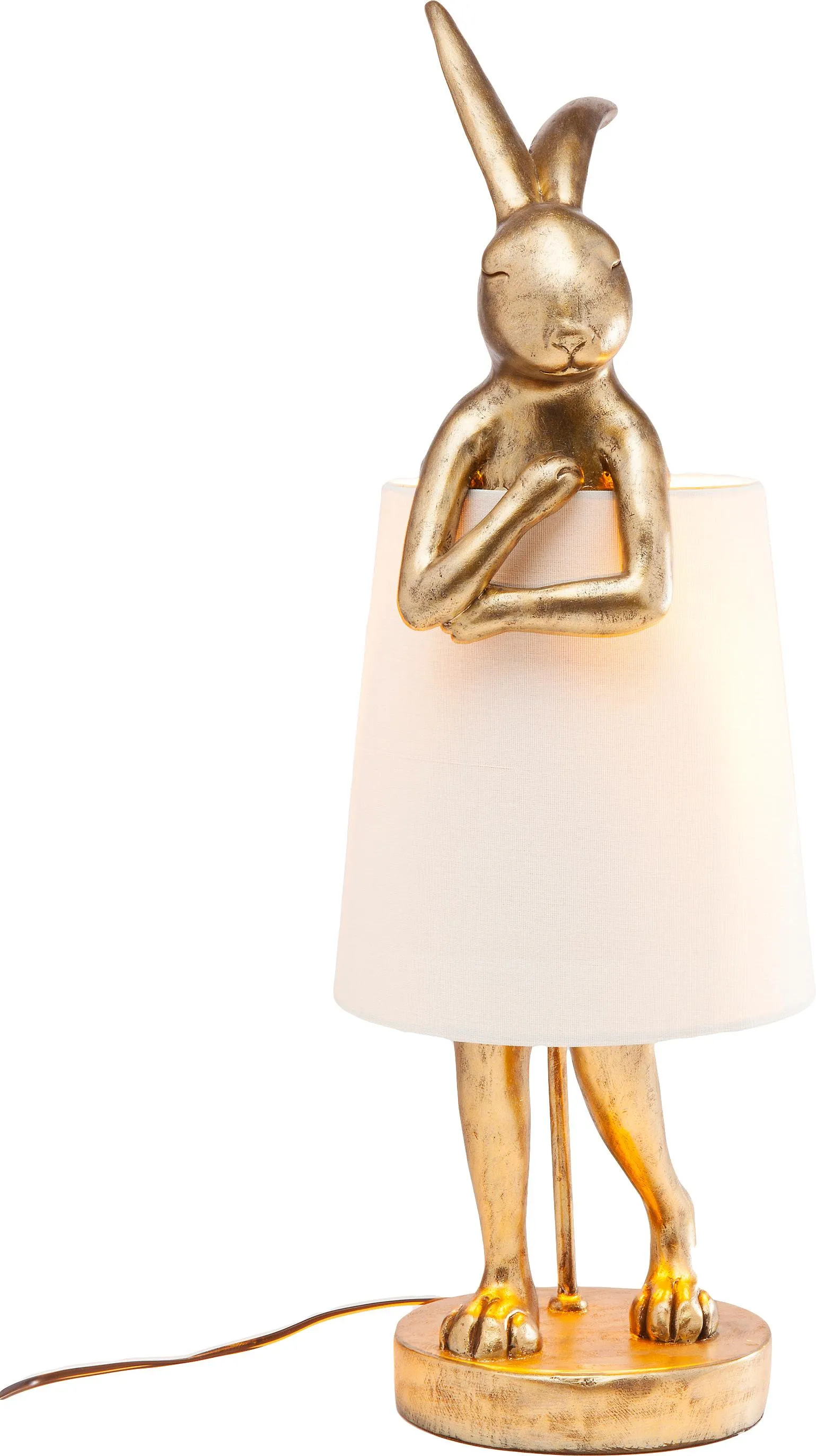 Nuostabus žaismingas šviestuvas aukso spalvos, baltu gaubtu.