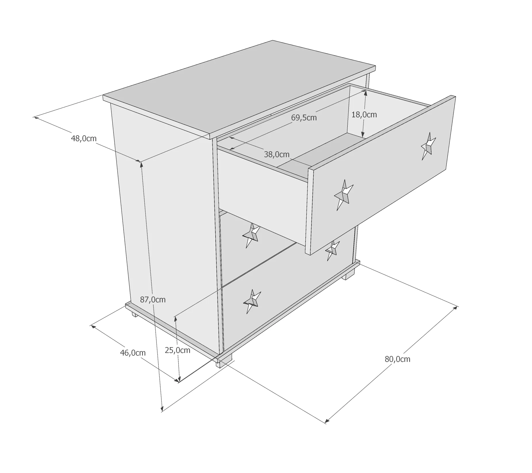 Ilgis : 80cm / Plotis : 48cm /Aukštis : 87cm