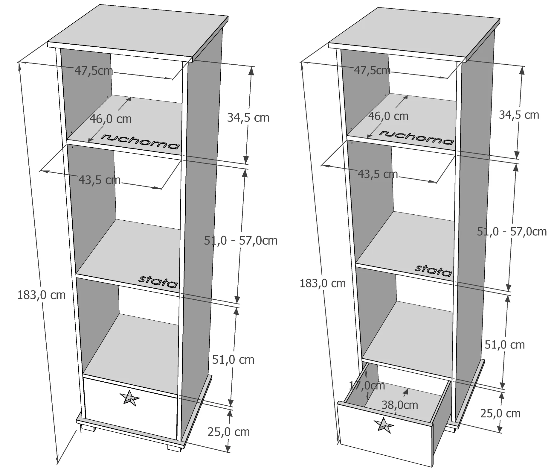Ilgis: 47,5cm / Plotis: 46cm /Aukštis: 176,5cm