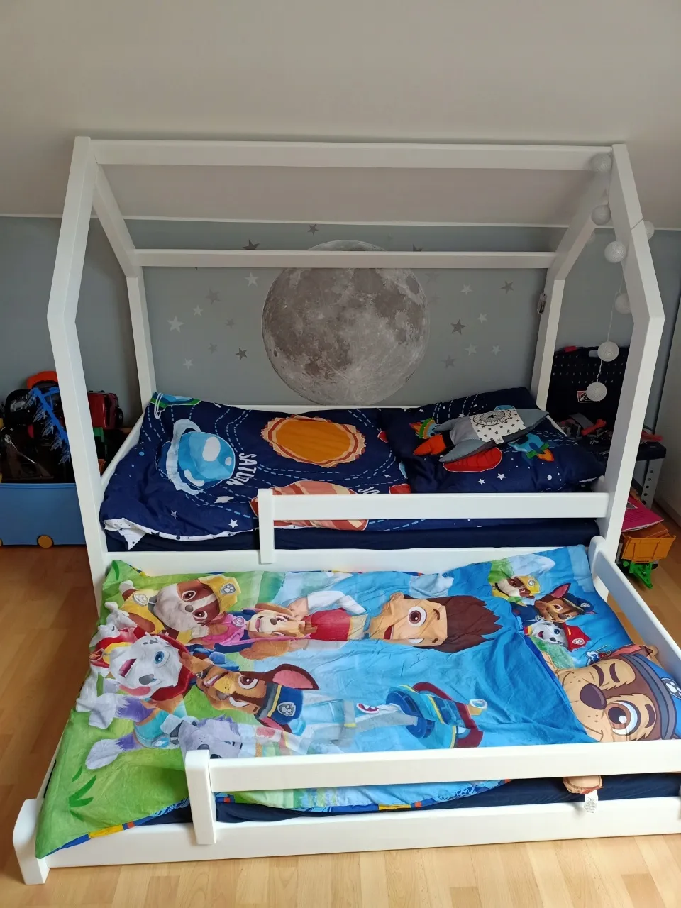 Medžiaga: lova pagaminta iš labai aukštos kokybės pušies medienos, dažyta tris kartus ekologiškais dažais pagal PN-EN71-3.