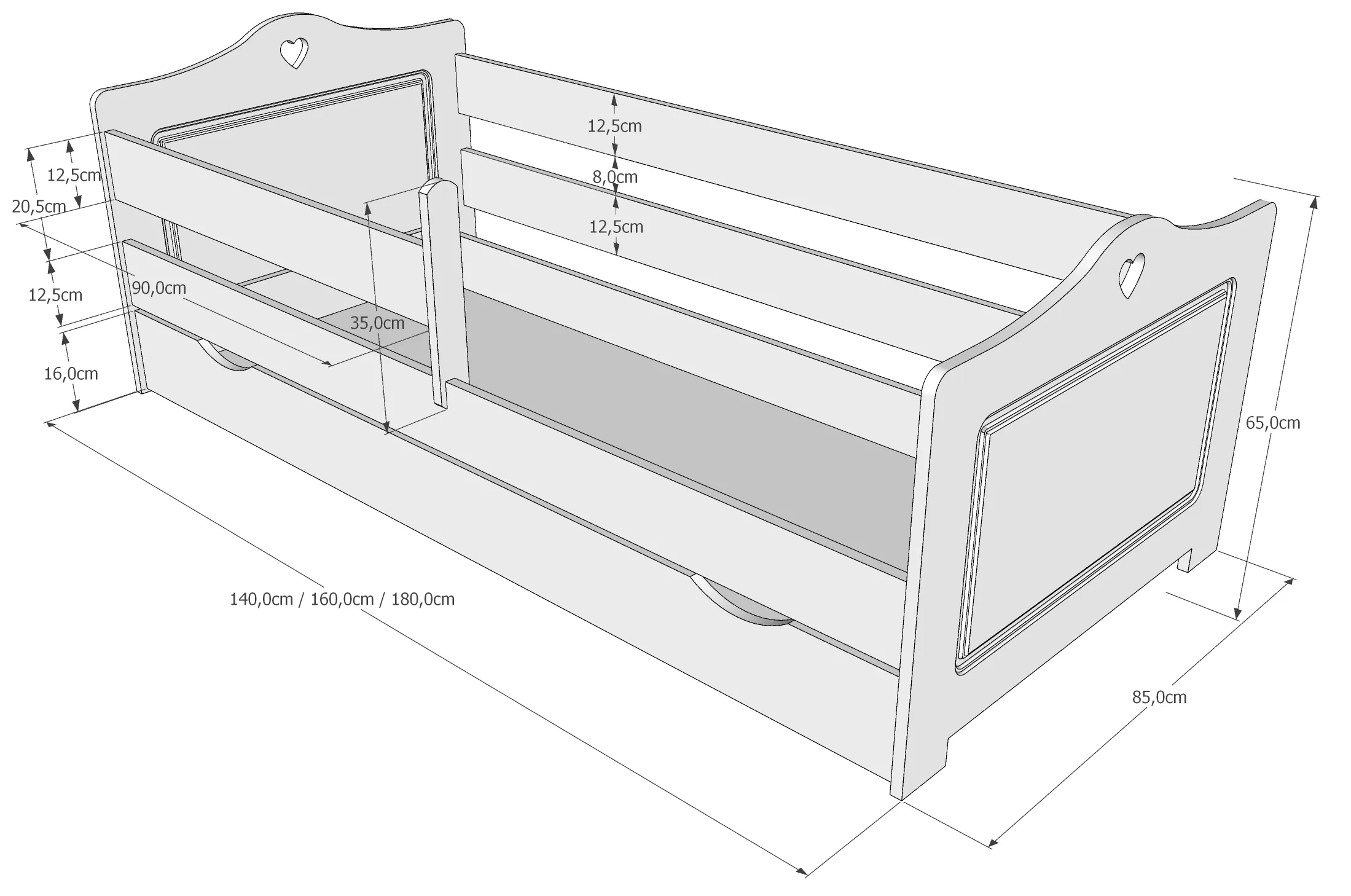 Miegojimo vieta: 140x80cm, 160x80cm, 180x80cm