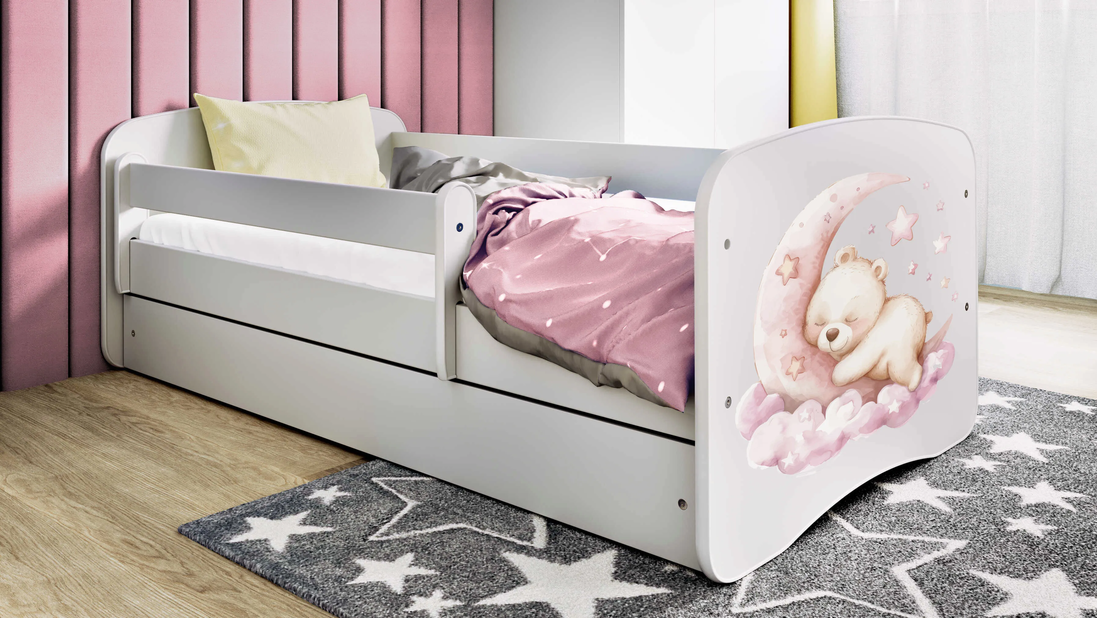 Galima komplektacija: lova + grotelės + čiužinys + stalčius + nuimama apsauga