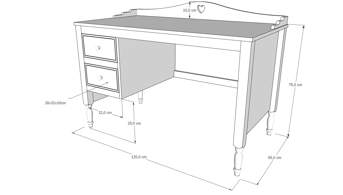 Medžiaga: staliukas pagamintas iš labai aukštos kokybės medienos drožlių plokštės. Su dviem giliais stalčiais