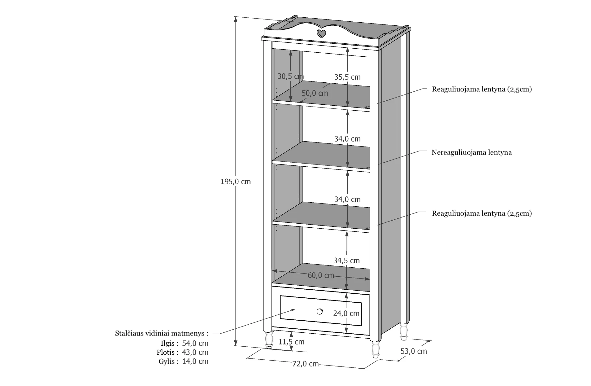 Komplektacija: stalčius ir keturios lentynėlės