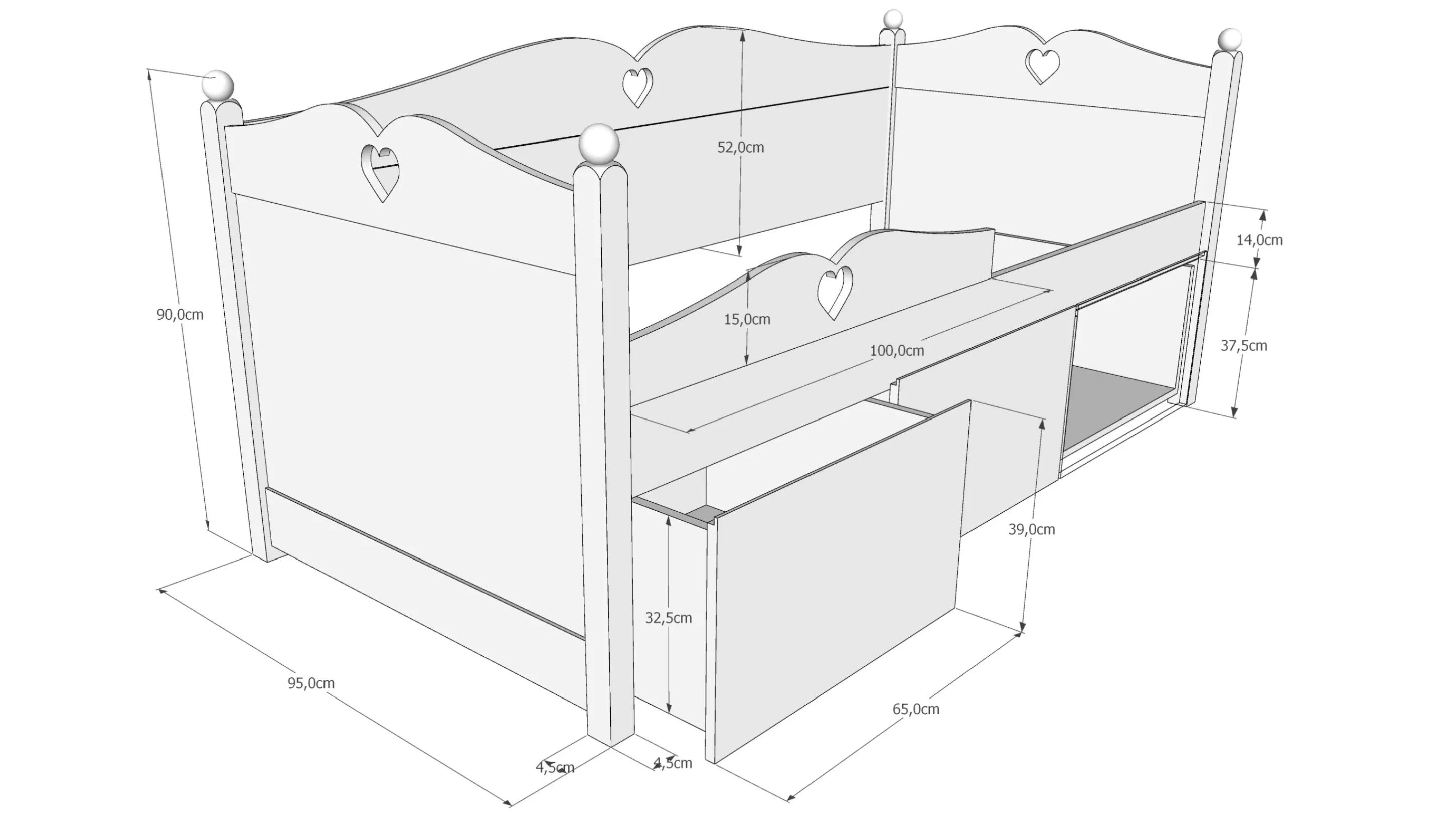 Medžiaga: lova pagaminta iš labai aukštos kokybės medienos drožlių plokštės. Lova lakuota vandeniniais lakais, kurie turi visus saugos sertifikatus